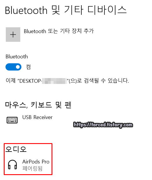 에어팟 프로 연결이 완료되면, 이렇게 '페어링됨'이라고 표시됩니다.