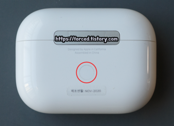 2. 에어팟 본체 뒷면에 있는 동그란 페어링 버튼을 10초 정도 눌러준다.